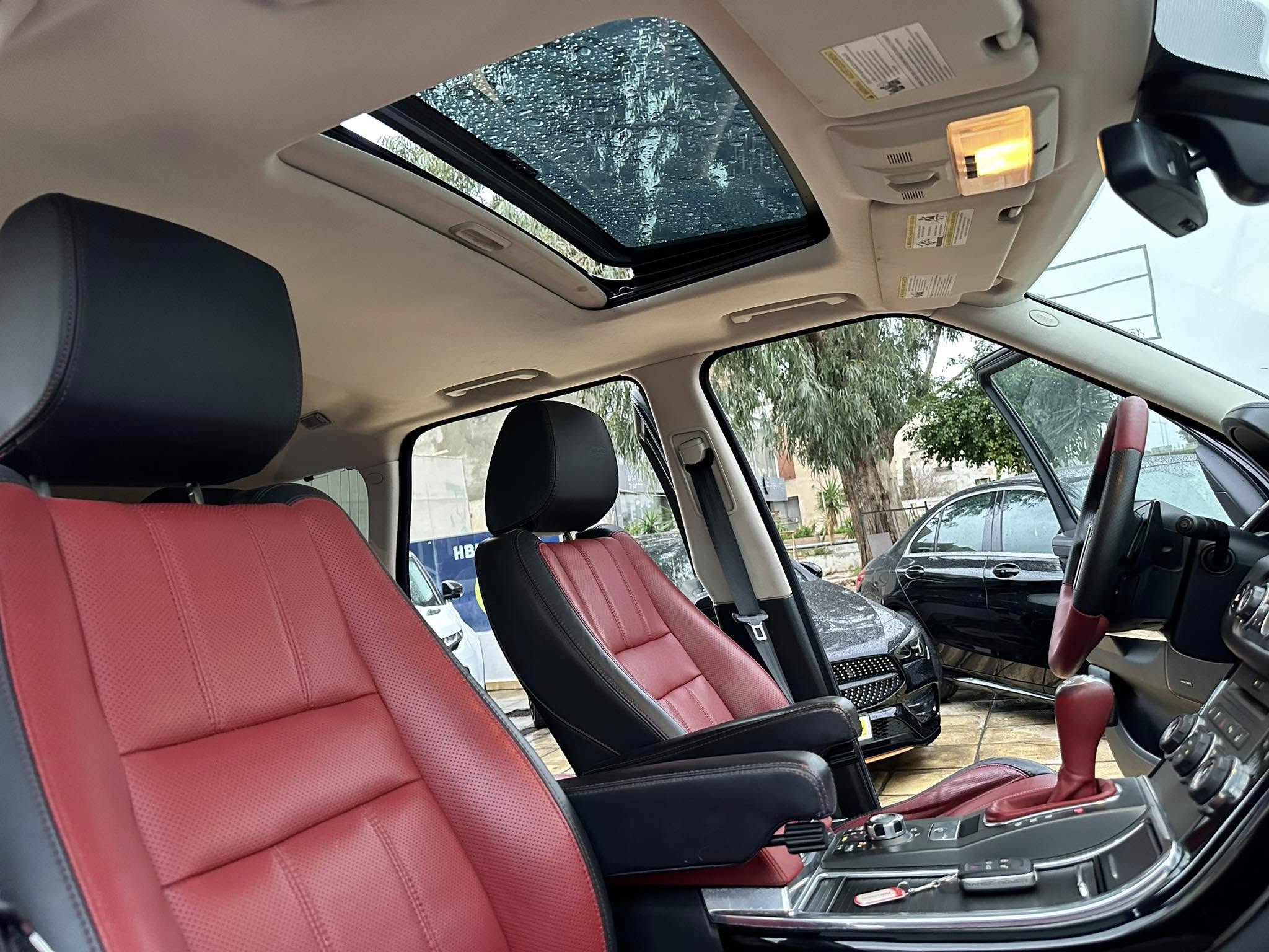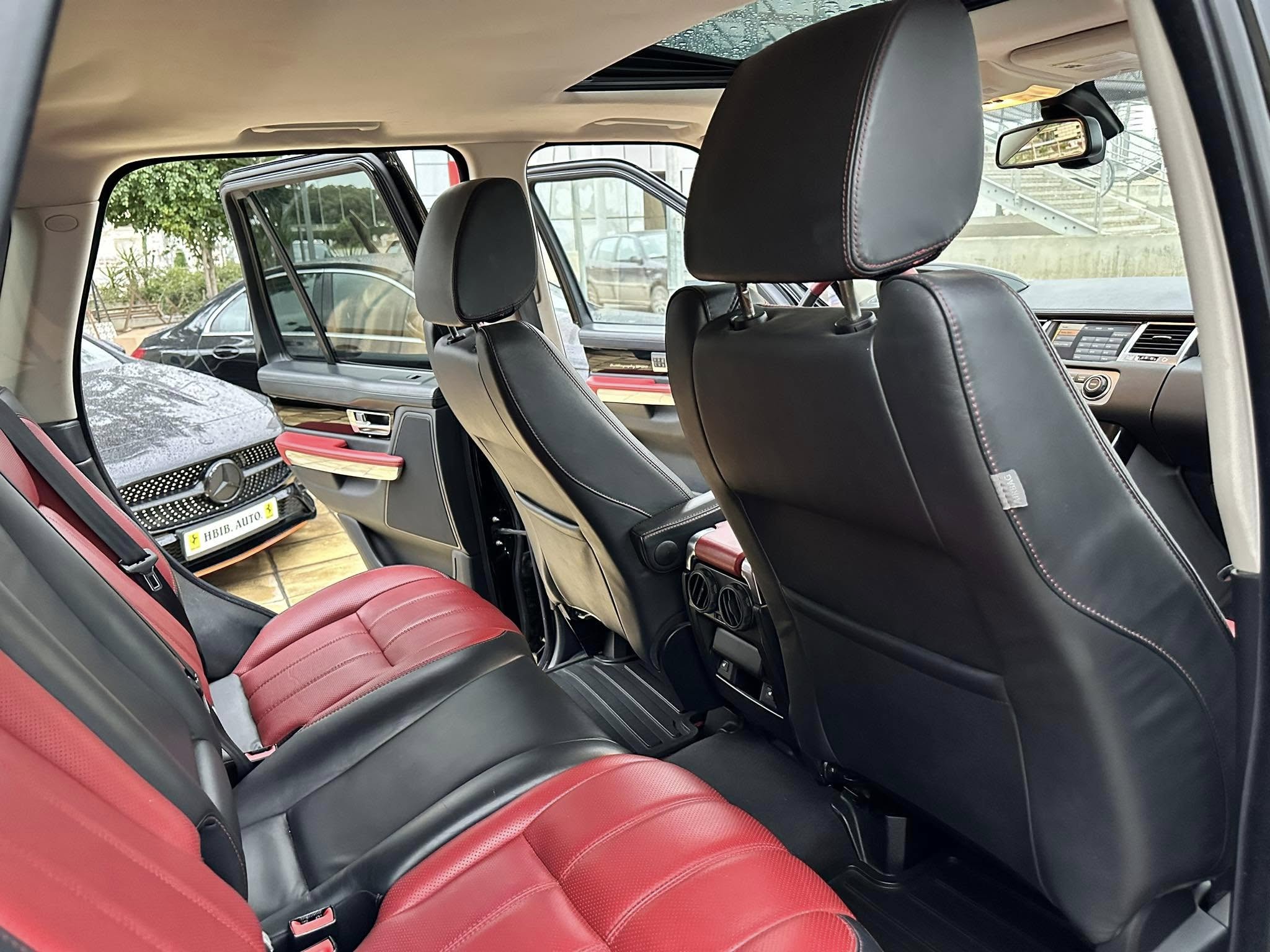 salon tout cuir bi couleur rouge et noir avec finition en carbone